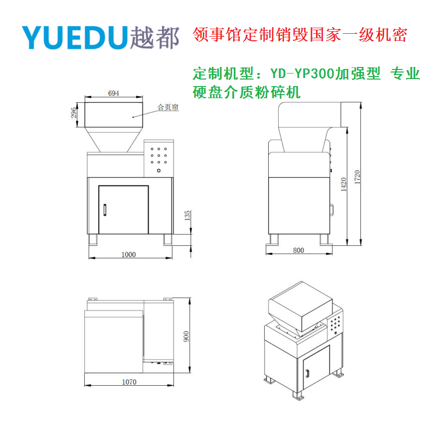 —— 越都漏斗式YD-YP300系列加強型大容量硬盤專用碎紙機,線路板銷毀機 硒鼓粉碎機 電腦主板保密銷毀